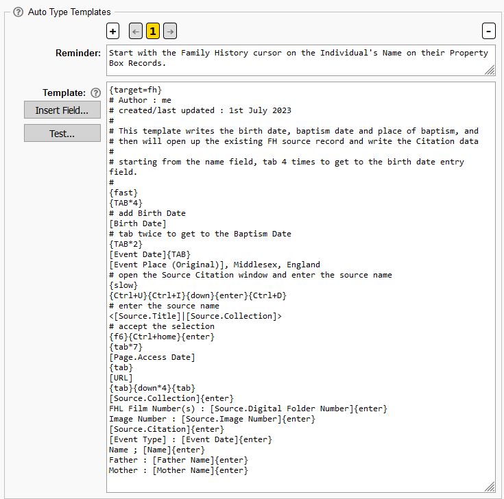 What you may want to do, is to click the Export Settings button at the top of the ORA Settings screen to make a back up, and then to review what we have done, and adapt any of the navigation steps, ie the number of {tab}s, etc to suit your layouts in Family Historian. If you somehow 'mess it up', you can Import those Settings to get back to your working templates. You can also print off a report by clicking the Collection Report, so you can have a seperate screen or print copy.